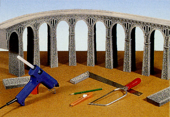Viadukty z tvrzené pěny od firmy Noch, patřící do kategorie zdiva z lámaného kamene, mají velmi realistický vzhled a jsou vhodné pro použití v horské krajině. Navíc se velmi snadno opracovávají. Mostní díly můžete lepit jakýmkoliv lepidlem a to i takovým, které obsahuje rozpouštědla.