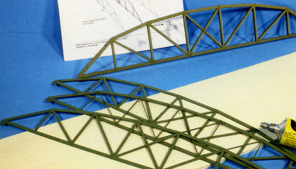 Obr. 6 Slepte jednotlivé části mostu dohromady. Postranní díly připevněte k příčným nosníkům. Konstrukce postranních dílů je jako u originálu vyztužena a může přenášet zatížení, které působí na jízdní dráhu při projíždění vlaku.