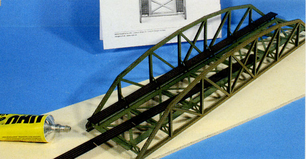 Obr. 9 Když most usadíte, vyřízněte podkladní trasu a přilepte pilíře tavným lepidlem.