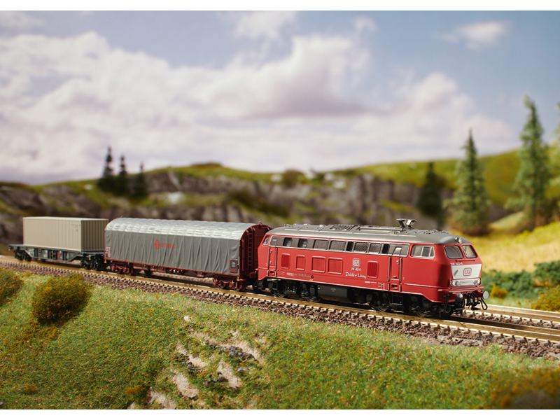 z21 start set s dieselovou lokomotivou řady 221 a nákladním vlakem DB Roco 5110008