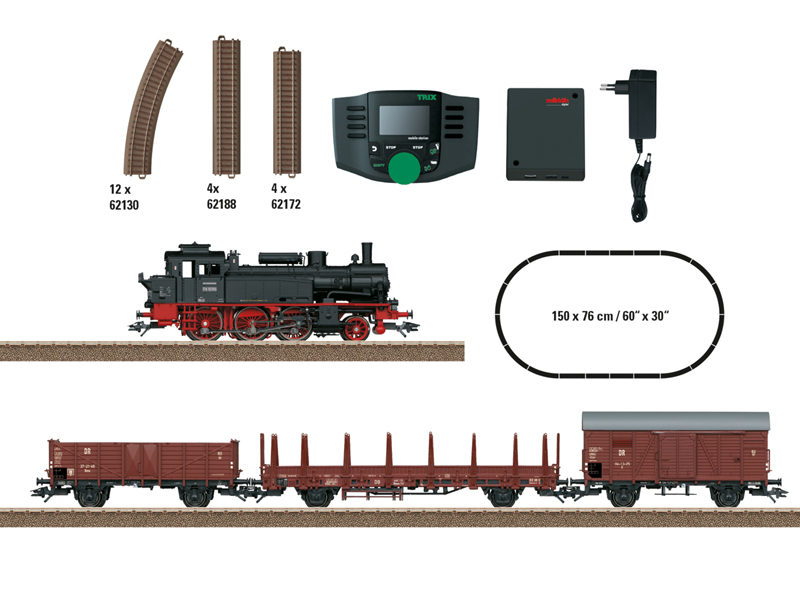digitální set s parní lokomotivou BR 74 a nákladním vlakem DR Trix 21531