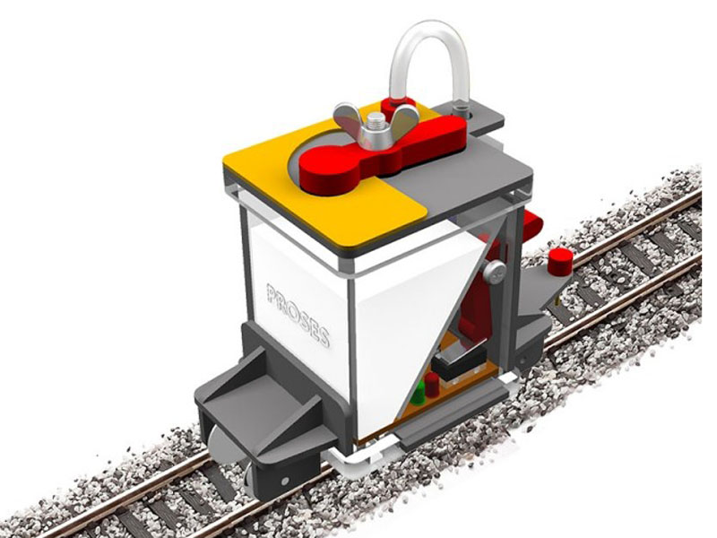 Aplikátor lepidla slouží k nanesení lepidla na naaranžovaný štěrk mezi kolejemi. Je tlačen nebo tažen lokomotivou (DC/DCC). Spouštěcí frekvence je elektronicky nastavena. Kapky lepidla dopadají pouze na štěrk a pražce, takže není nutné po lepení kolejnice čistit.