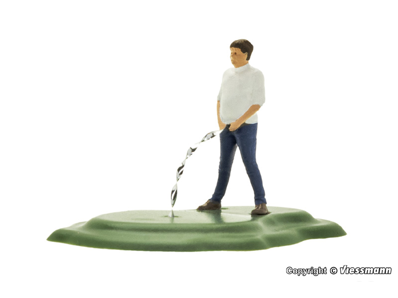 Figurka čůrajícího muže. Proud vody je simulován rotujícím prvkem z akrylového skla. Instalační hloubka 45mm. Není vhodné pro děti do 15 let.