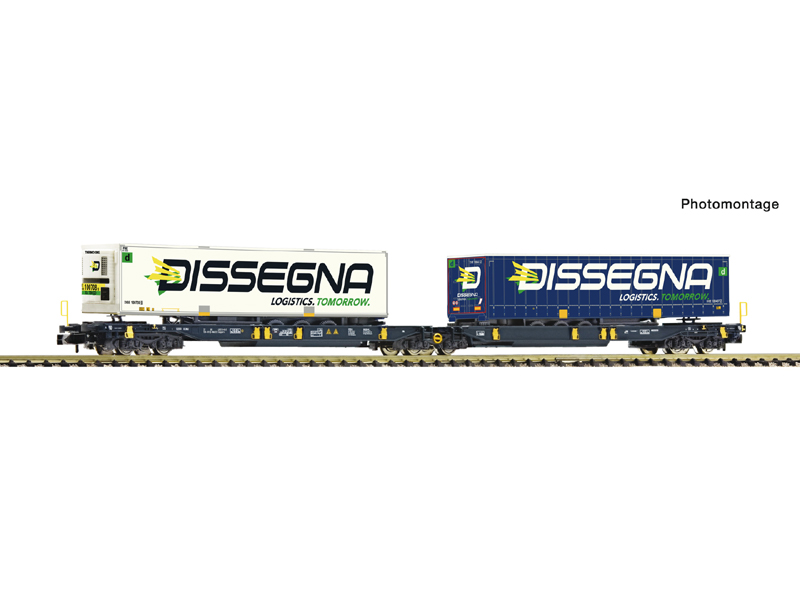 Dvojitý kapsový kloubový vůz typu Sdggmrs/T2000 Wascosa. Naloženo plachtovým a chladírenským návěsem od přepravní společnosti Dissegna. Rám vozu vyrobený z tlakově litého kovu. Lze variabilně vybavit kontejnery nebo a návěsy. Kulisa krátkého spřáhla s kinematikou. Nevhodné pro děti do 14 let.