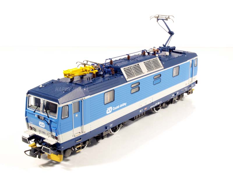 V 80. letech se ČSD a DR rozhodly pro pořízení dvousystémových lokomotiv, aby zjednodušily neustále rostoucí dopravní a provozní procesy v přeshraniční dopravě na trase Berlín – Drážďany – Praha. Rozšíření spojení Děčín-Praha na maximální rychlost 160 km/h si vyžádalo modernizaci některých lokomotiv. Od roku 1994 bylo šest českých lokomotiv řady 372 upraveno pro vyšší rychlost a od té doby jezdí pod třídním označením 371 a získaly přezdívku Turbobastard. Přestavěné stroje přiřadily ČD do pražského depa. Model v jemně detailním provedení s mnoha samostatně připojenými díly představuje předlohu v barevném designu Najbrt. Pantografy s inovativním uchycením. Propracovaný design střešních partií a lopatek ventilátoru. Filigránové provedení podvozků a paprskových kol. Přiloženy plné pluchy a vzduchové nádrže pro prezentaci ve vitríně. V digitálním provozu samostatně ovládané osvětlení kabiny strojvedoucího, ovládacích pultů a strojovny. Dynamický zvukový paket pro lepší hloubky zvuku se dvěma reproduktory. Instalován 16-bitový zvukový modul pro perfektní zvukový zážitek. Návěst konec vlaku lze přepínat pomocí DIP přepínače. Osvětlení LED závisléna směru jízdy. Minimální poloměr oblouku 358 mm. Kinematika krátkého spřáhla s kulisou dle NEM. Není vhodné pro děti do 14 let. Doprodej – u výrobce vyprodáno.