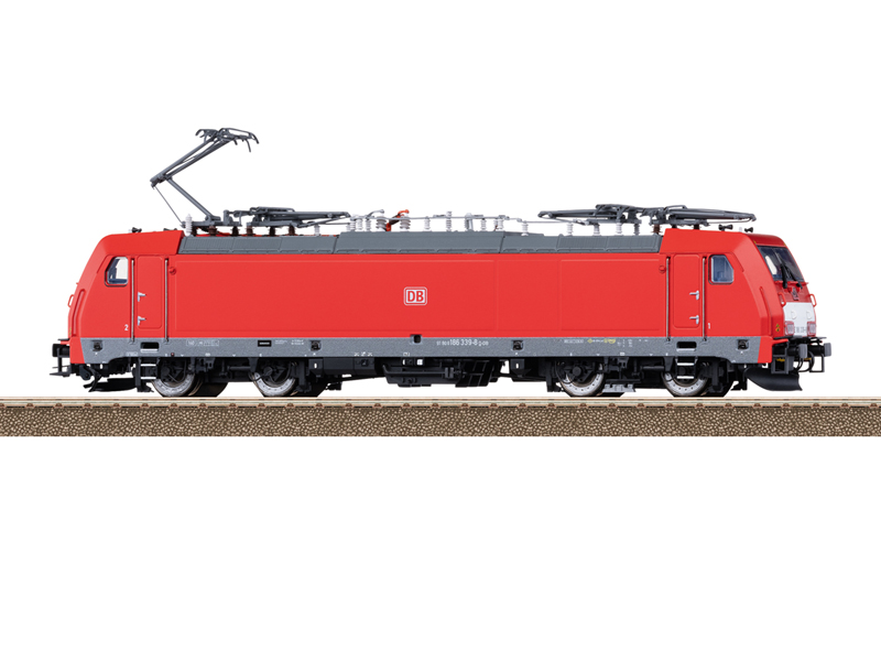Předloha: Elektrická lokomotiva řady 186 společnosti Deutsche Bahn AG. Základní barva dopravní červená. Provozní číslo 186 339-8. Provozní stav od roku 2019. Model: S digitálním dekodérem a rozsáhlými zvukovými funkcemi. Regulovaný vysoce výkonný pohon se setrvačníkem, centrálně instalovaný. Všechny čtyři nápravy jsou poháněny přes kardan. Bandáže. Třísvětelné světlomety a dvě červená koncová světla se mění v závislosti na směru jízdy, v klasickém provozu, digitálně přepínatelné. Dálková světla lze separátně spínat. Světlomety na straně lokomotivy 2 a 1 lze samostatně digitálně vypnout. Funkce dvojitého světla A. Osvětlení kabiny a pultu strojvedoucího lze samostatně digitálně spínat. Osvětlení bezúdržbovými teplými bílými a červenými světelnými diodami (LED). Energetický zásobník energie pro plynulou jízdu. Mnoho samostatně připojených dílů, jako jsou madla, pískovače, zásuvky UIC a střešní vedení. Detailní střešní konstrukce se čtyřmi nově navrženými pantografy s různými kontaktními lištami pro použití v Německu, Francii a Belgii. Výška nárazníků podle NEM. Brzdová vedení, šroubovky, zásuvky el. kabelů a uzavřené pluhy jsou přiloženy jako samostatně připojitelné díly.
