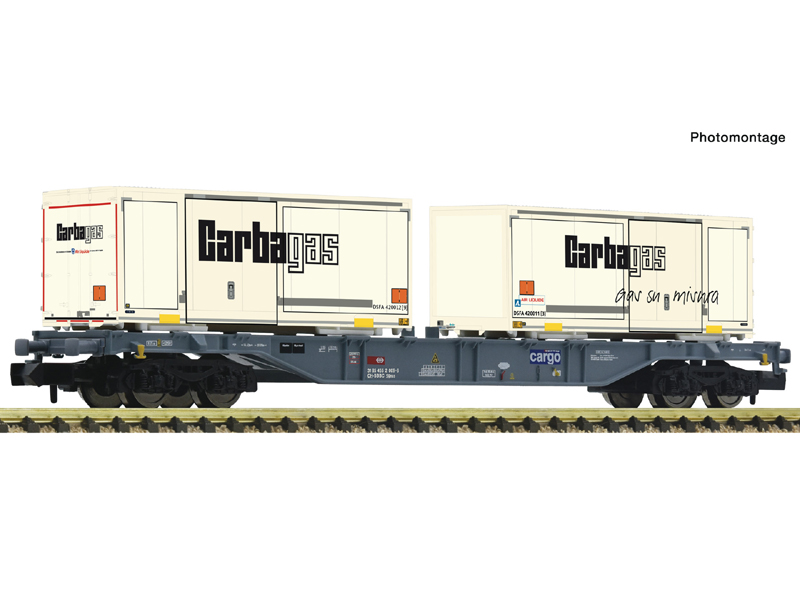 Kontejnerový vůz typu Sgnss SBB Cargo s nákladem dvou výměnných nástaveb. Obě výměnné nástavby potištěná odlišně – logo na různých pozicích. Výměnná nástavba s barevnou reklamou na přední straně. Kulisa krátkého spřáhla s kinematikou. Nevhodné pro děti do 14 let.