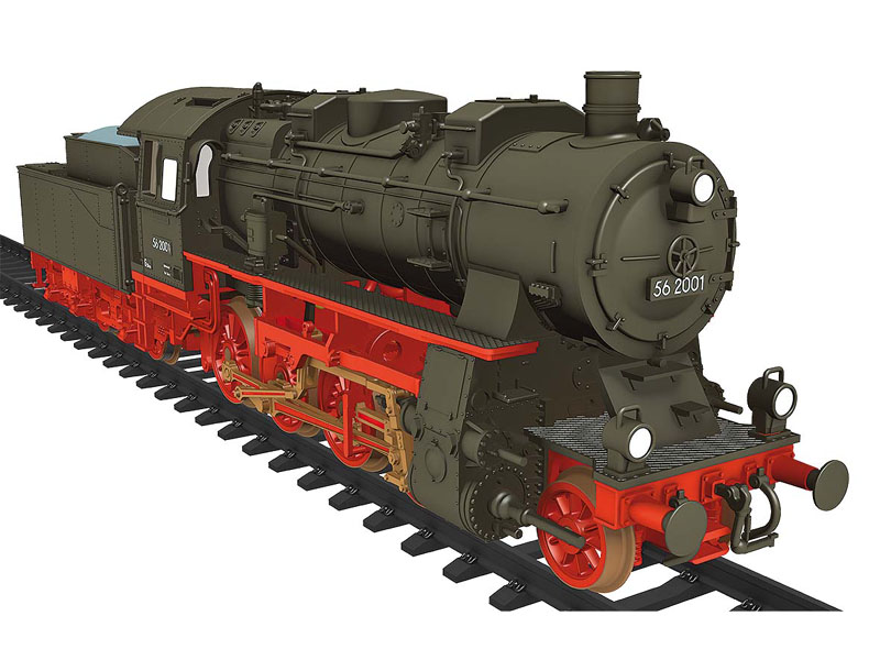 Parní lokomotiva 56 2001 Rbd Erfurt. Model s novým dekodérem Lenz. Vestavěný generátor kouře, osvětlení kabiny strojvedoucího a motoru. Nevhodné pro děti do 14 let.