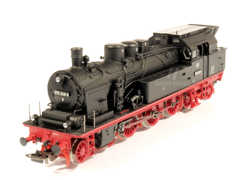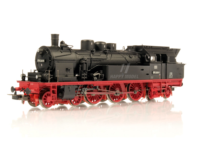 Detailně provedený model parní lokomotivy BR 078. Výkonný pětipólový motor se setrvačníkem. LED osvětlení, přepínatelné, osvětlení kabiny strojvedoucího. Lokomotiva je připravena k instalaci zvukového dekodéru 56484 a parního generátoru 56163. Bez kinematiky krátkého spřáhla. Minimální poloměr: 358 mm.