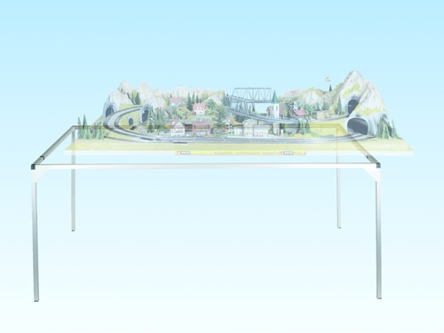Konstrukce z hliníkových profilů určená jako velmi lehký podstavec pod desku kolejiště. Rozměry 125 x 60 cm, výška 78 cm. Vhodné pro všechny velikosti. Nevhodné pro děti do 15 let.