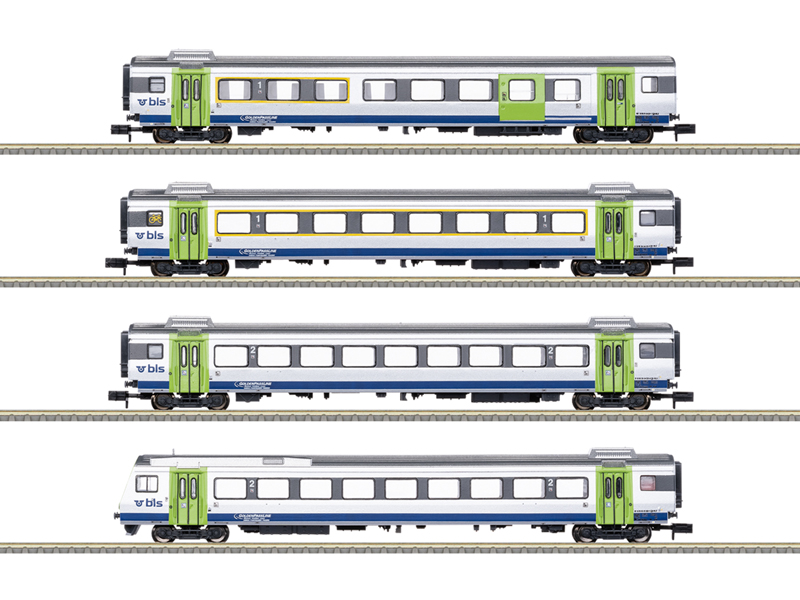 Předloha: Čtyři rychlíkové vozy typu Einheitswagen III (EW III) BLS Lötschbergbahn AG (Bern-Lötschberg-Simplon). Skládá se z vozu 1. třídy se zavazadlovým prostorem AD, vozu 1. třídy A, vozu 2. třídy BOLD a 2. třídy řídicího vozu Bt. Model: Řídící vůz s 3-světelným světlometem na straně kabiny řidiče se změnou světla 3x bílé a 1x bílé a se 14-pinovým digitálním rozhraním. Připraveno pro následnou instalaci vnitřního osvětlení – vhodné vnitřní osvětlení LED: Trix 66611 pro osobní vozy, Trix 66616 pro řídící vůz. Při použití dekodéru Minitrix lze separátně ovládat světlomety a vnitřní osvětlení. Reálnou vlakovou soupravu lze vytvořit doplněním o lokomotivu řady Re 4/4 II, obj.číslo 16884, a vozy rychlíku obj.číslo 18293 a 18294. Kinematika krátkého spřáhla s šachtou de NEM. Není určeno pro děti do 15 let.
