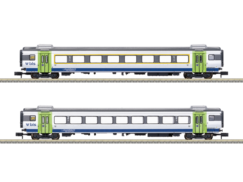 Předloha: Dva rychlíkové vozy typu Einheitswagen III (EW III) BLS Lötschbergbahn AG (Bern-Lötschberg-Simplon). Skládá se z vozu 1. třídy A a vozu 2. třídy B. V barevném provedení bílá hliníková a jasně zelená, jak se objevily kolem roku 2017 jako GoldenPassLine. Model: Připraveno pro následnou instalaci vnitřního osvětlení LED. Vhodné vnitřní osvětlení: obj. číslo. Reálnou vlakovou soupravu můžete získat s lokomotivou řady Re 4/4 II, obj. číslo 16884, a s vozy obj. číslo 18293 a 18294. Kinematika krátkého spřáhla s šachtou de NEM. Není určeno pro děti do 15 let.