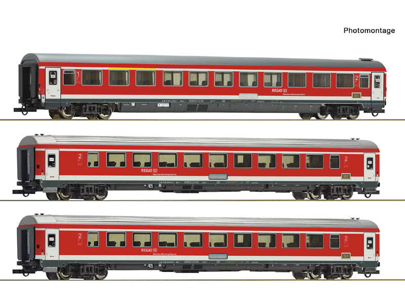 Set osobních vozů Mnichov-Norimberk-Express se skládá ze dvou vozů 2.třídy typu Bpmz a osobního vozu 1/2.třídy typu ABvmsz. Provozní stav z roku 2015. Vybavený interiér a příprava pro vestavbu vnitřního osvětlení k.č. 40420. Kinematika krátkého spřáhla se šachtou dle NEM 362. Ideálním doplňkem k setu k.č. 6200097 a řídícímu vozu k.č. 6210098. Nevhodné pro děti do 15 let.