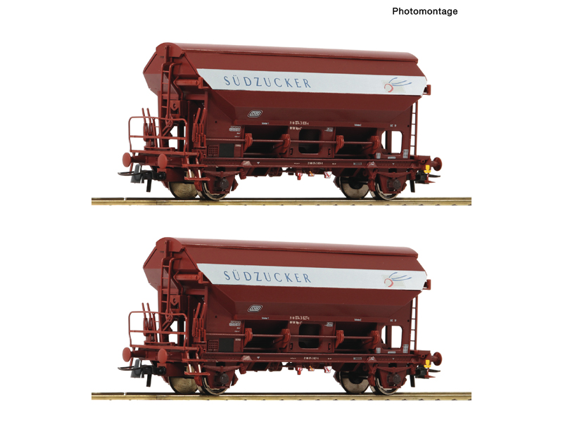 Set dvou výsypných vozů s posuvnou střechou typu Tdgs. Kinematika krátkého spřáhla se šachtou dle NEM 362. Nevhodné pro děti do 15 let.