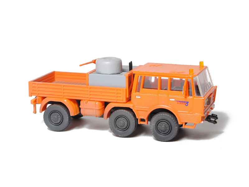 Kompletní plastiková stavebnice tahače přívěsů. Obsahuje probarvené plastikové výlisky na sestavení modelu, majáky, kovové osičky a sadu obtisků. Tento model lze sestavit zcela bez nutnosti barvení. Sestavený model na fotografiích je opatřen nátěrem a přiloženými obtisky. Není vhodné pro děti do 14 let.