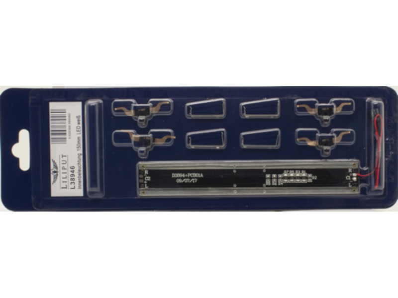 Sada vnitřního osvětlení včetně sběračů proudu. Kondenzátor pro zamezení poblikávání. Bílé LED napodobuji novější zářivkové osvětlení. Vodné pro všechny napájecí systémy. Je možno instalovat i do vagónu jiných výrobců.