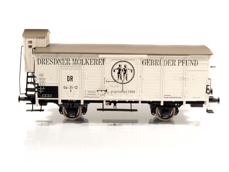 Limitovaná edice. Rám vozu vyroben přesně podle předlohy. Přesná reprodukce mezer mezi prkny. Kovová dvojkolí. Vícedílný brzdový systém. Extra dosazené držáky koncových návěstí. Brzdové čelisti v rovině kola. Prolomené vzpěry skříně vozu. Precizní potisk a lakování. Extra dosazené kryty nápravových ložisek. Kinematika krátkého spřáhla podle normy NEM. Provozní číslo 04-31-12. Určeno pro uživatele starší 15 let.