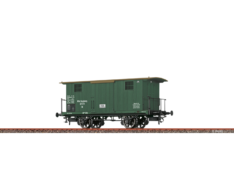 Dvojkolí s hrotovými ložisky. Precizní potisk a lakování. Kovová kola. Připojeno mnoho dalších dílů. Přesná reprodukce spojů prken. Extra dosazený brzdový systém. Provozní číslo: Württemberg 21 173. Kinematika krátkého spřáhla s šachtou dle NEM. Není určeno pro děti do 14 let.